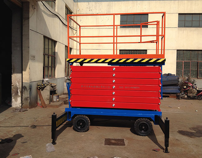 移动式剪叉升降平台是用途广泛的高空作业作业专用设备。它的剪叉机械结构,使升降台起升有较高的稳定性,宽大的作业平台和较高的承载能力,使高空作业范围更大、并适合多人同时作业。它使高空作业效率更高,安全更保障。